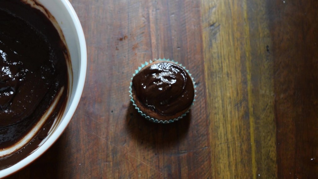 - POUR your chocolate peanut butter ganache on top of your cake or cupcake with a spoon so it is evenly spread (or you can dip the cupcakes into the ganache).